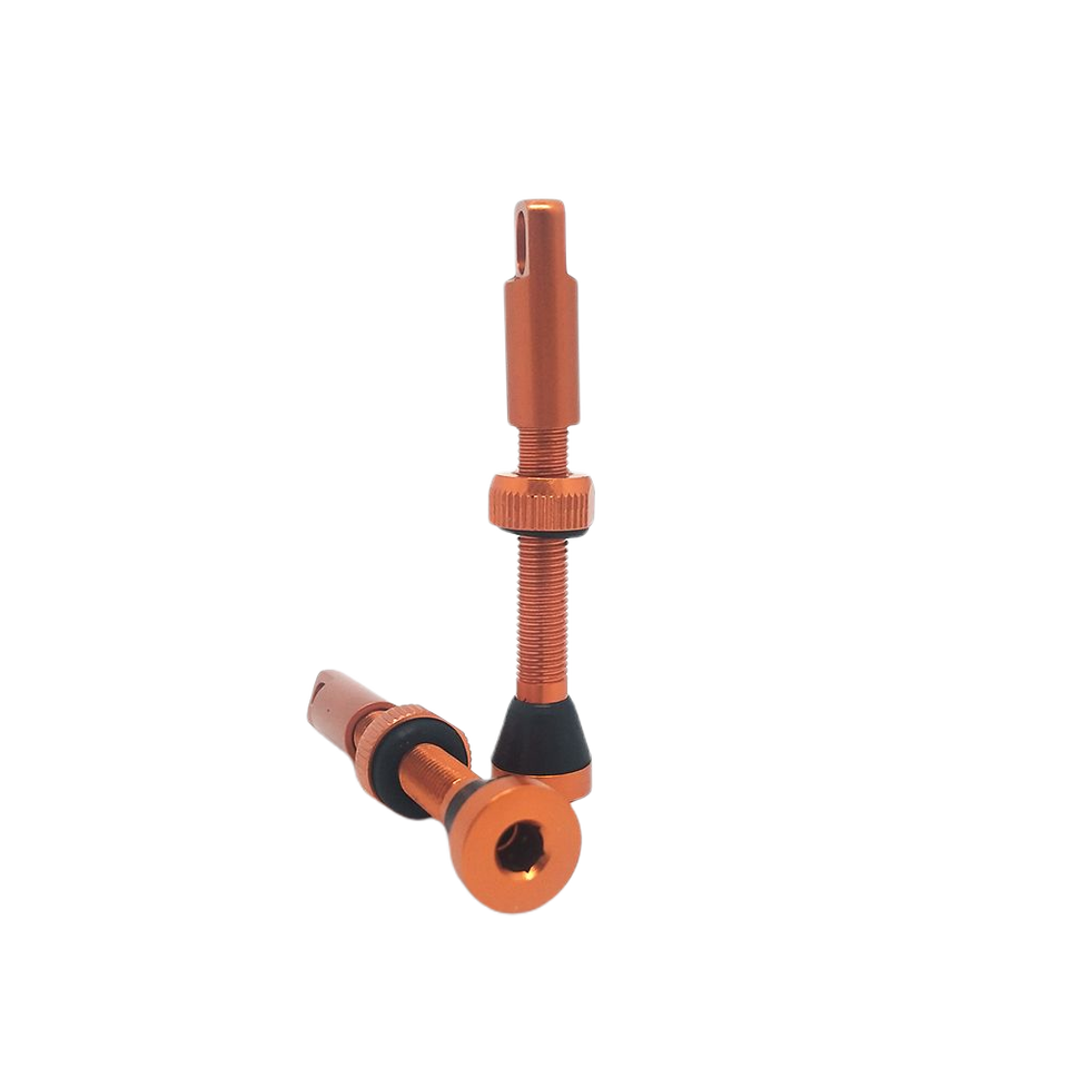 วาล์วแบบไม่มีท่อ55มม. อุปกรณ์อลูมิเนียมอัลลอยสีส้มสำหรับจักรยาน