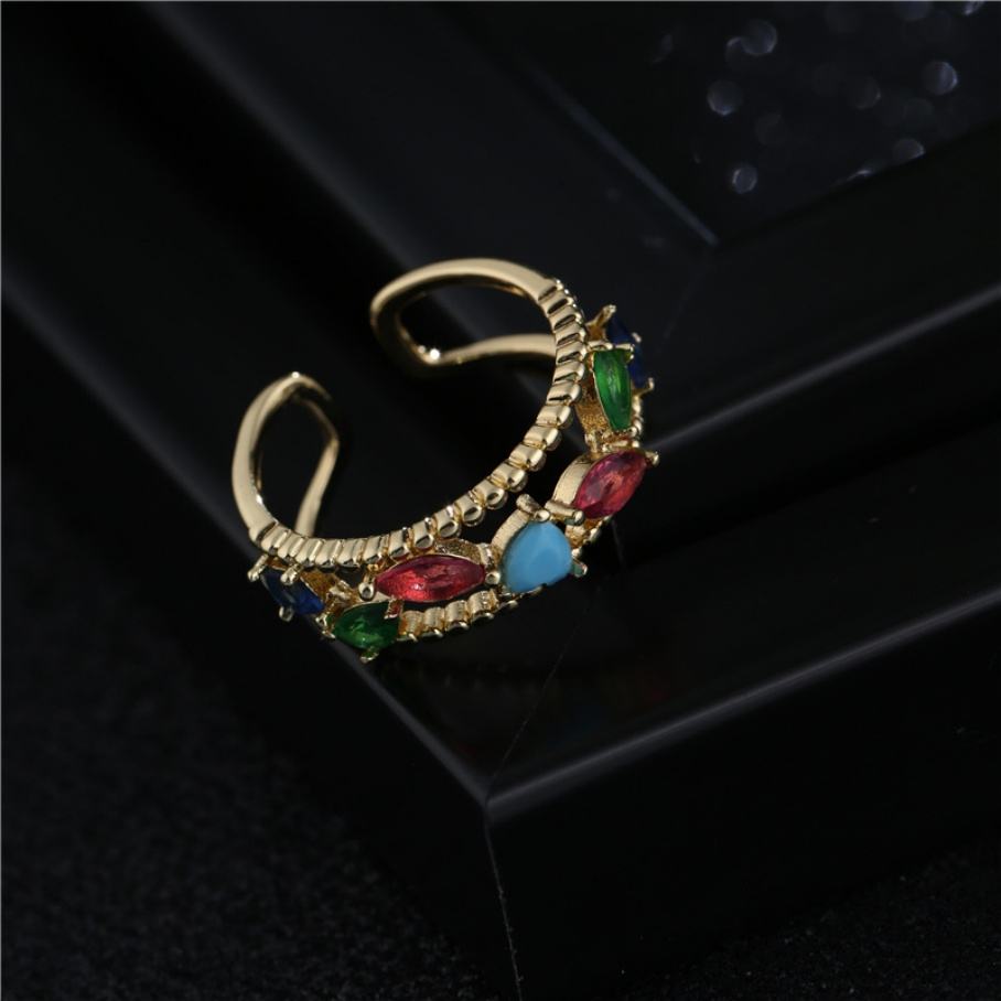 แหวนทองแดงประดับเพชรคิวบิกเซอร์โคเนียคุณภาพสูง 5A สีสันสดใส สไตล์ฮิปฮอป สำหรับสาวๆ เหมาะสำหรับงานแต่งงาน งานหมั้น งานเลี้ยงฉลองครบรอบ