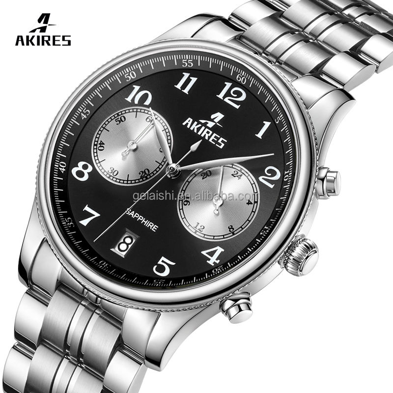 นาฬิกาควอตซ์คุณภาพสูง 5atm กระจกแซฟไฟร์ ดีไซน์คลาสสิก ตัวเรือนบางเฉียบ 50 ชิ้น ฝาหลังแบบ Submarine กันน้ำ 5atm พร้อมเข็มนาฬิกา