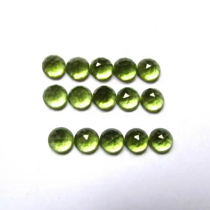 พลอยเพอริโดต์ธรรมชาติ5มม. คุณภาพสูงตัดรูปกุหลาบทรงหลังแบนปรับเทียบอัญมณีหลวมจากผู้จำหน่ายที่ได้รับการตรวจสอบแล้ว