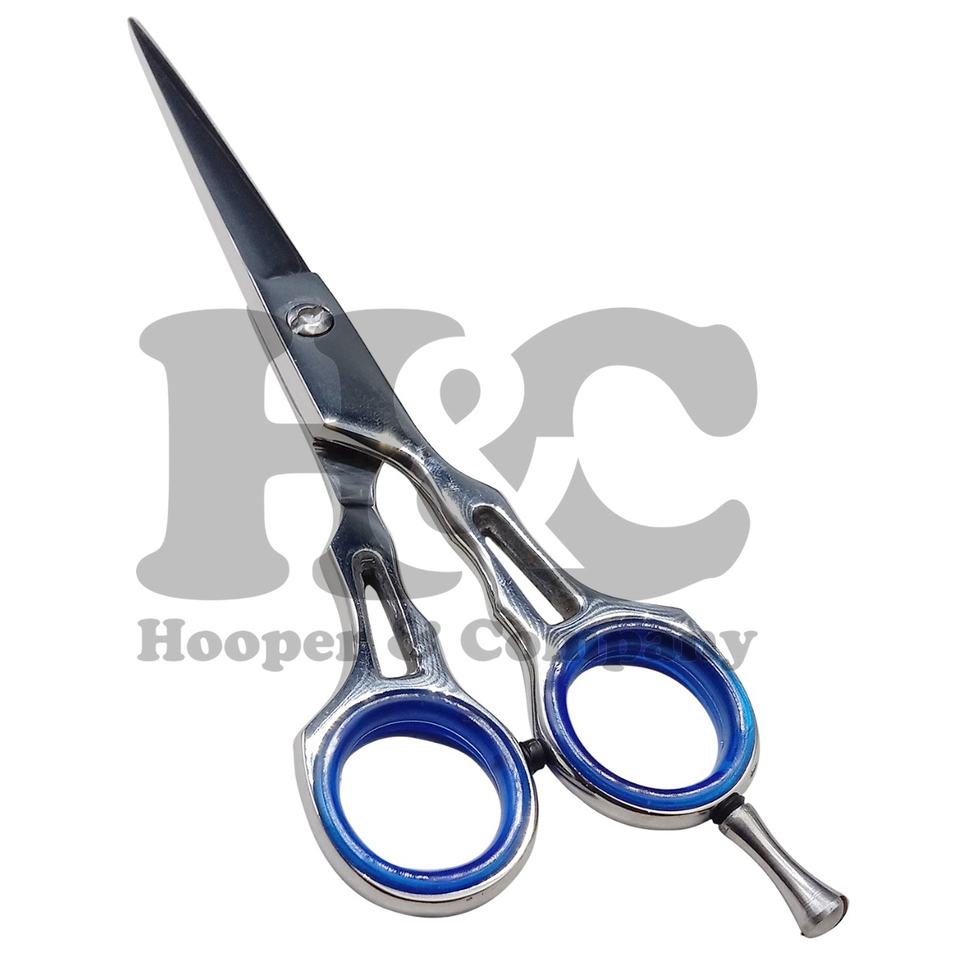 กรรไกรตัดผมญี่ปุ่นคุณภาพสูง6 "สีฟ้าดำแพ็คโลโก้สแตนเลสคมพร้อมส่ง