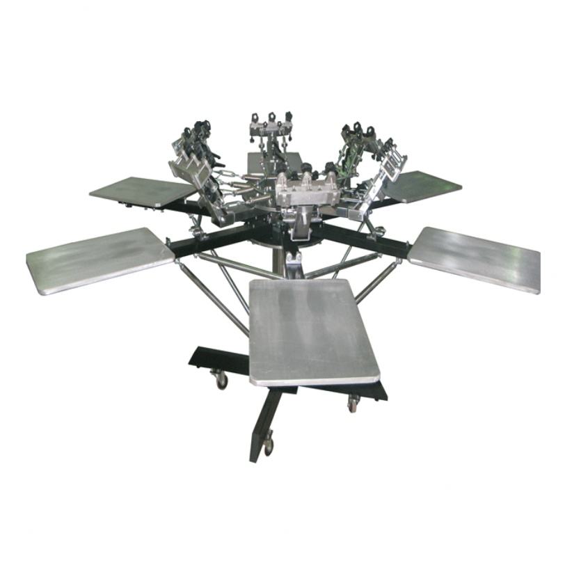 เครื่องพิมพ์ฉลากหลากสี 6 สถานี คุณภาพสูง ใช้งานง่าย รุ่นใหม่ หมุนด้วยมือ สำหรับงานพิมพ์สกรีนเสื้อผ้า มือสอง