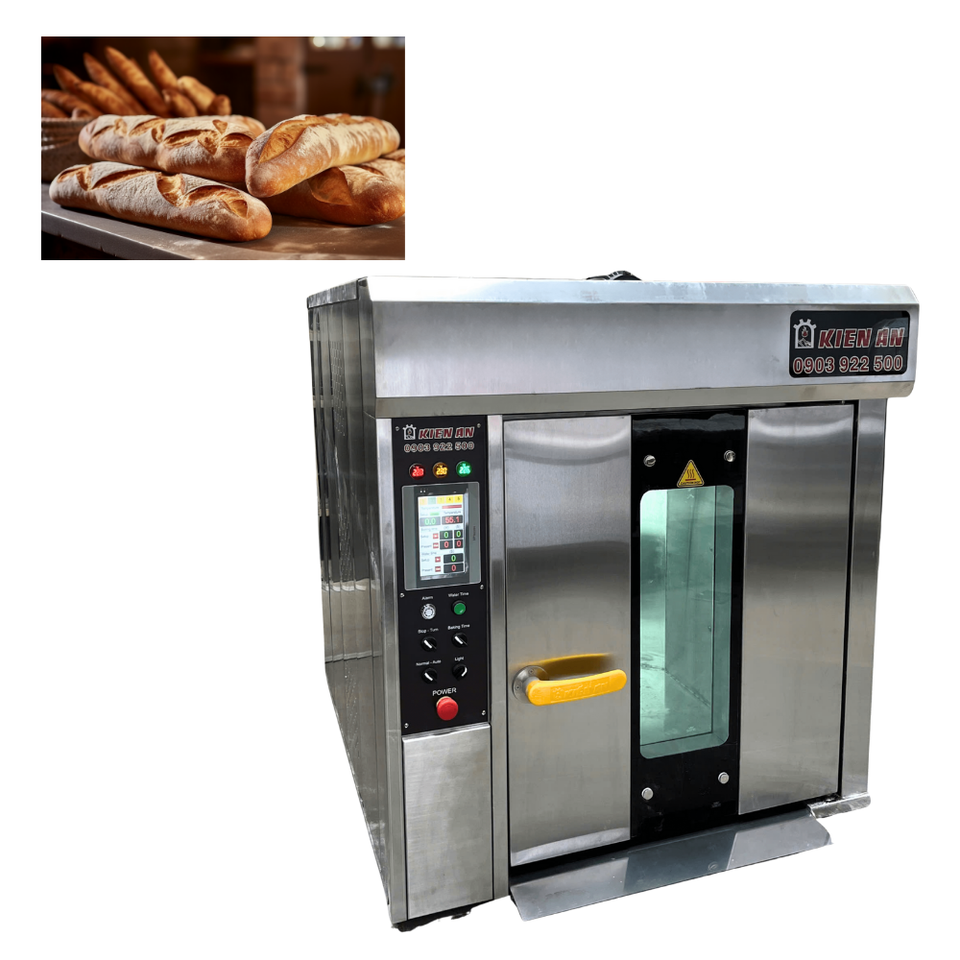 เตาอบแบบหมุน6ถาดพร้อมรถเข็นแบบอัลทูนท็อปสำหรับอบเตาอบแก๊สบาแกตต์ความจุ18กิโลวัตต์/ชั่วโมงเตาอบไฟฟ้าผลิตในเวียดนาม