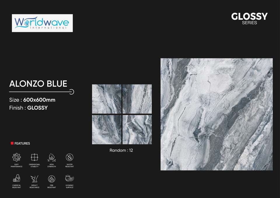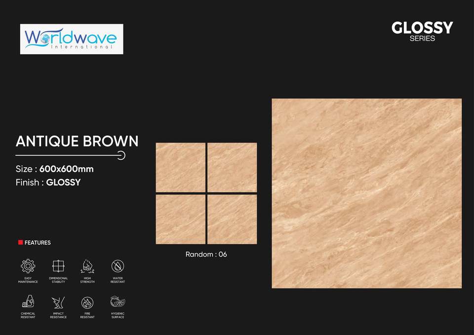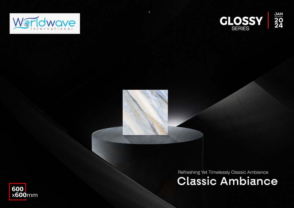 กระเบื้องปูพื้นพอร์ซเลนวิทริฟายด์ลายหินอ่อนคุณภาพสูง WorldWave ขนาด 600x600 มม. ผิวมันเงา กันลื่น ทนทานต่อการสึกหรอ ป้องกันแบคทีเรีย ทันสมัย