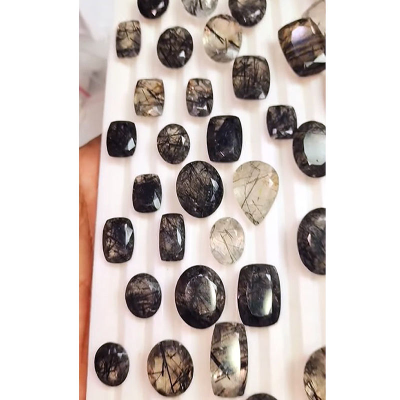 พลอยสี่เหลี่ยมสีดำเจียระไนควอทซ์