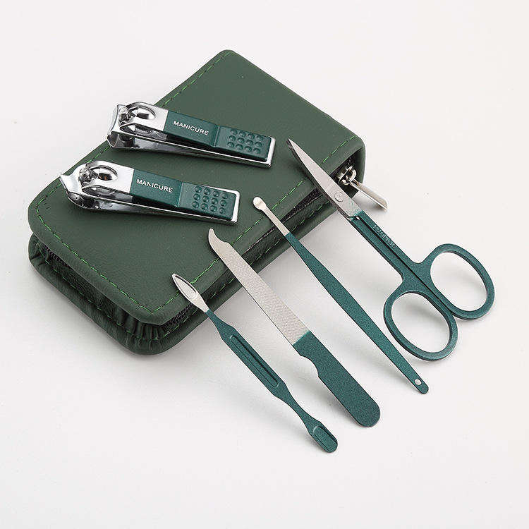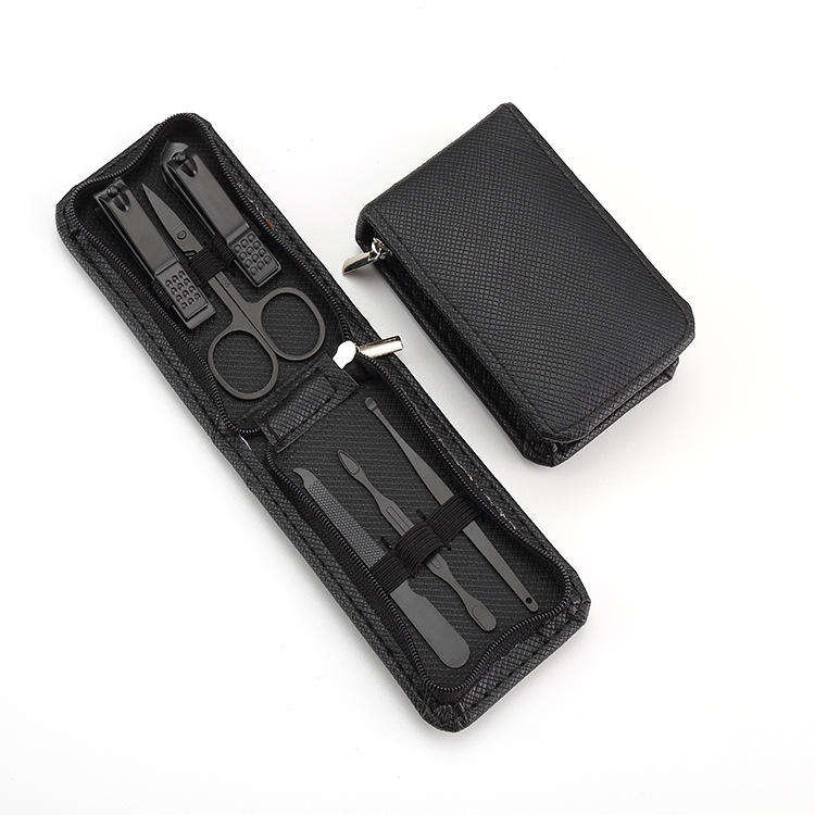 ชุดทำเล็บมือเล็บเท้า6ชิ้นชุดอุปกรณ์ความงามสแตนเลสรวมทั้งกรรไกรตัดเล็บที่หูช้อนตะไบเล็บกล่อง PU แบบกำหนดเอง
