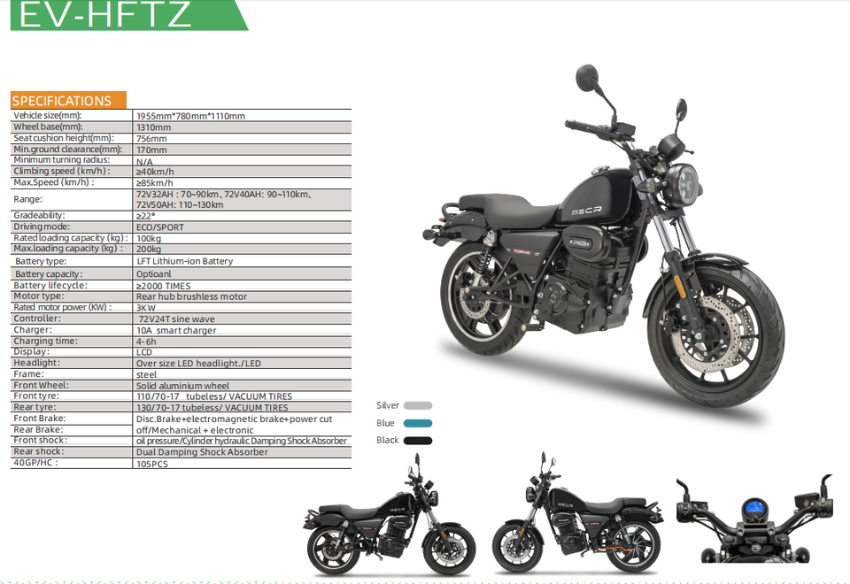 High Quality 72V Electric Cruiser Motorcycle Durable Steel with Brushless Motor Street Cruising Capabilities