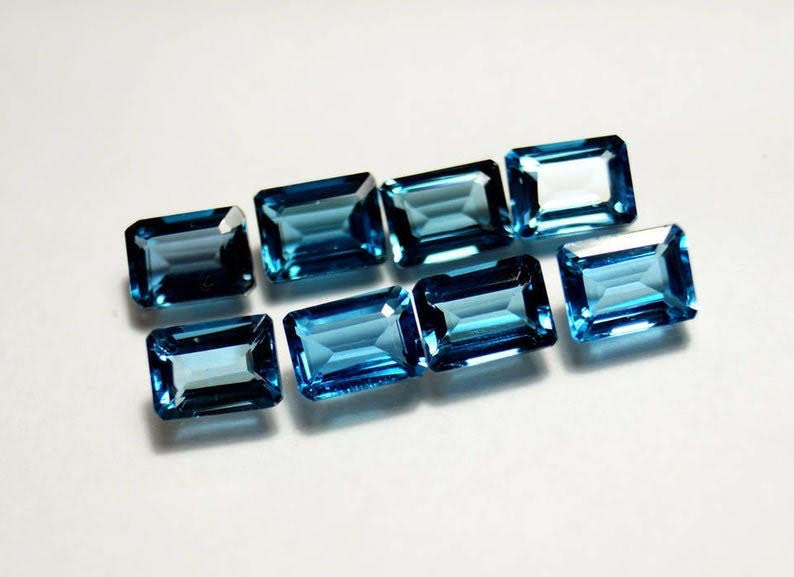 หิน7X9mm เหลี่ยมเพชรพลอยธรรมชาติโทแพซลอนดอนสีฟ้าทรงแปดเหลี่ยมหินหลวมเจียระไนแบบเหลี่ยมเพชรพลอยขายส่งราคาโรงงานต่อกะรัต