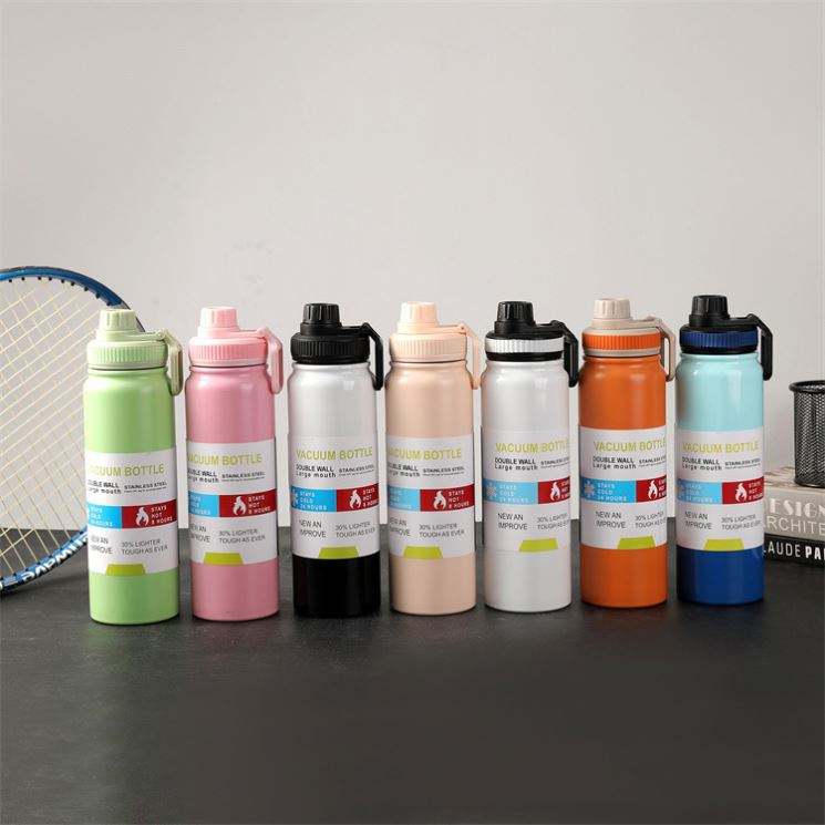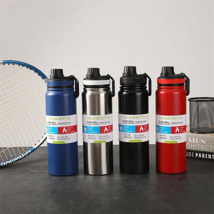 กระติกน้ำสุญญากาศสแตนเลสคุณภาพสูง ขนาด 800 มล. สำหรับเดินทางและเล่นกีฬา ปากกว้าง พร้อมหูหิ้ว