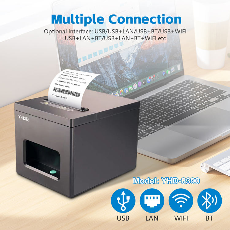 เครื่องพิมพ์ใบเสร็จความร้อนแบบตั้งโต๊ะคุณภาพสูง ขนาด 80 มม. พร้อมใบมีดตัดอัตโนมัติ