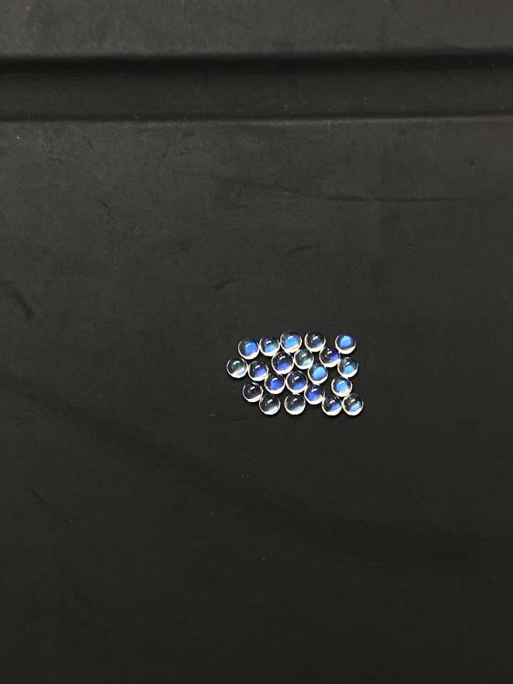 หินมูนสโตนสีรุ้งทรงกลมธรรมชาติขนาด8มม. อัญมณีหลวมสีฟ้าสำหรับทำเครื่องประดับ