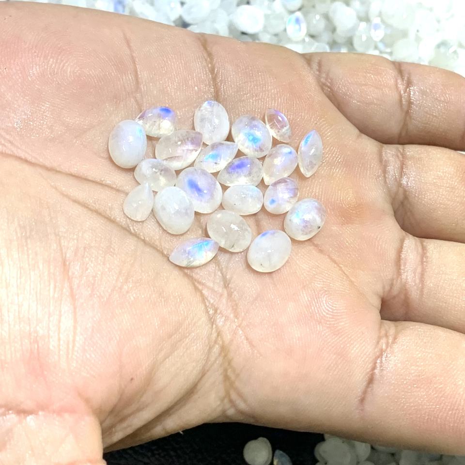 High Quality 8mm Tinny Size Rainbow Moonstone Cabochon Natural White Gemstone Blue Change Effect IGI Certified Loose Gemstones