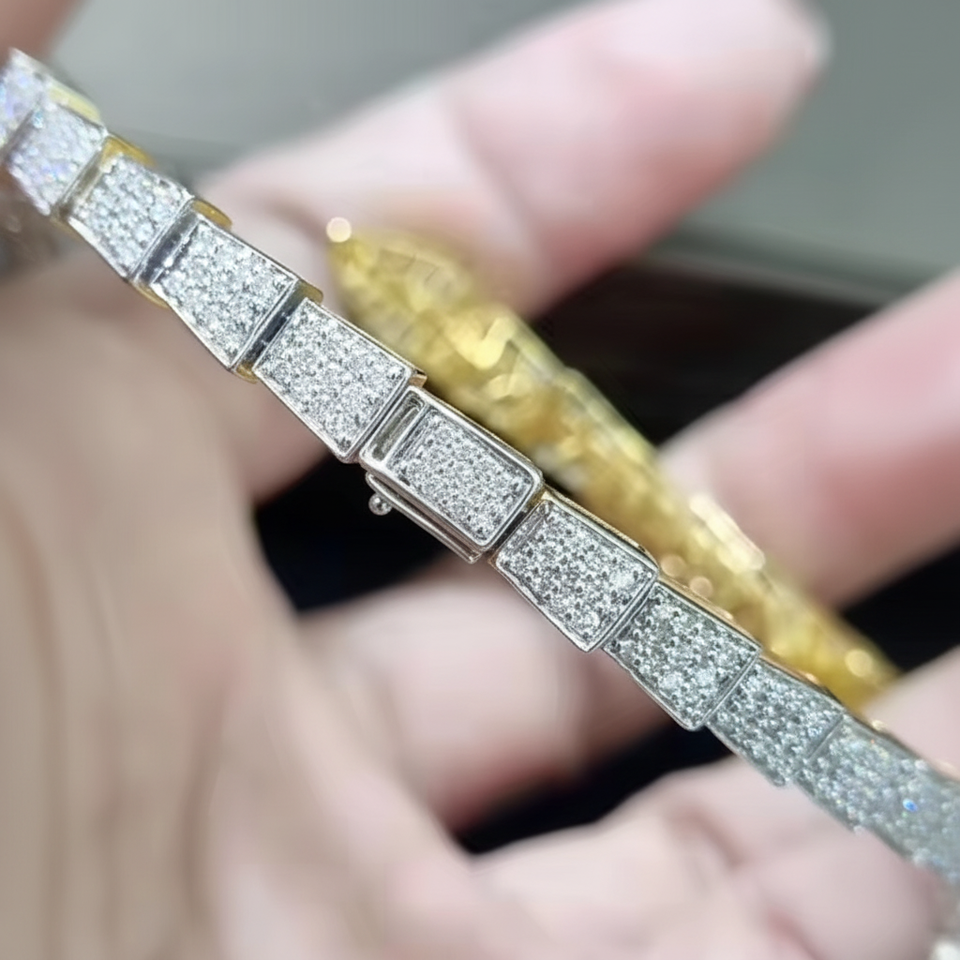 คุณภาพสูง8มม. VVS Moissanite สร้อยแบบคิวบา925เงินชุบทองสเตอริ่งของขวัญงานเลี้ยงแต่งงานได้รับการอนุมัติ