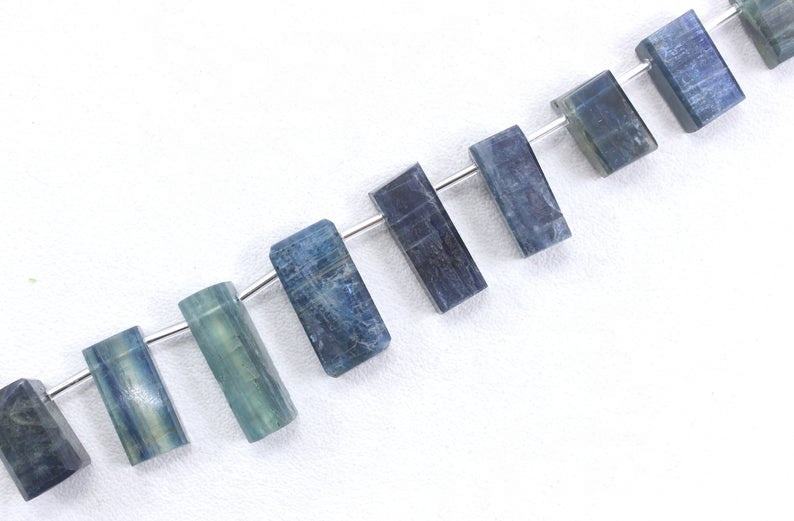 พลอยไคยาไนต์9ชิ้นสีฟ้าลูกปัดบริโอเลตทรงสี่เหลี่ยมผืนผ้าเรียบสำหรับทำเครื่องประดับขายส่ง