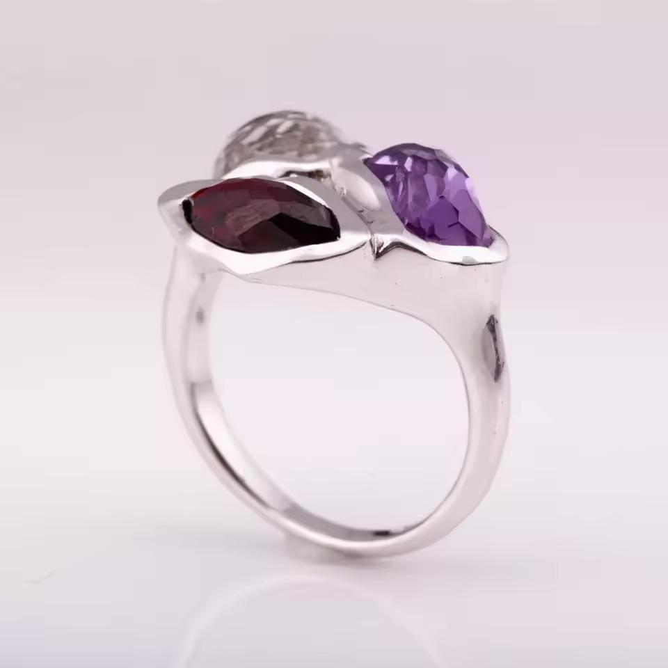 แหวนแฟชั่นสีเงิน925พลอยโกเมนธรรมชาติหินอเมทิสต์สีเข้มประดับเพชรด้วยเทคโนโลยีการฝังเพชร