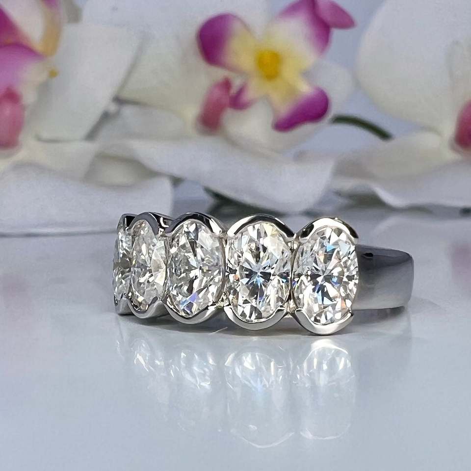 แหวนหินห้าเม็ดสีเงิน925คุณภาพสูงเครื่องประดับเพชรมอยส์ซอไนต์ทรงวงรีสำหรับงานแต่งงานของขวัญเจ้าสาวหมั้น