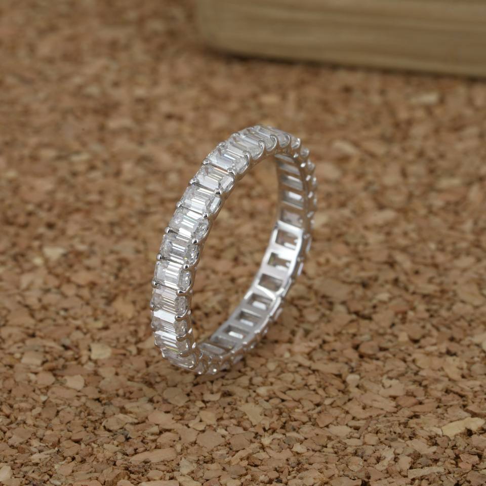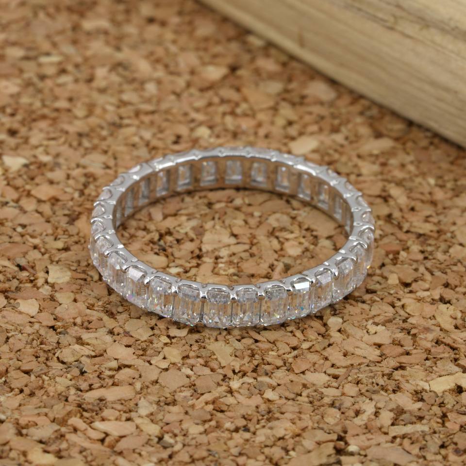 แหวนเพชรสำหรับปลูกในห้องทดลองสีเงิน925 VVS2ตัดสีมรกตได้รับการรับรองโดยจรรยาบรรณ