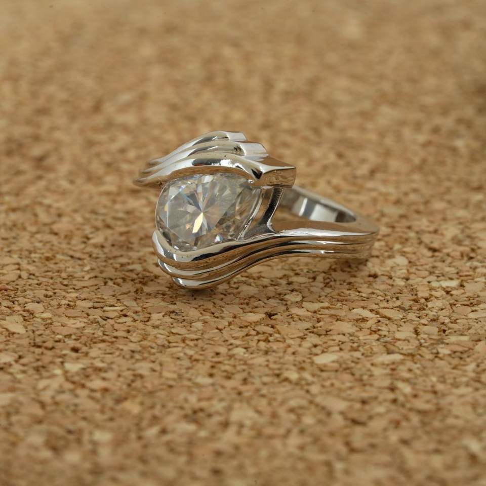แหวนเพชรสำหรับปลูกในห้องทดลองทำจากเงิน925 3.40กะรัตลูกแพร์ตัดสีตามหลักจริยธรรมได้รับการรับรองผู้ผลิตแบบยั่งยืน