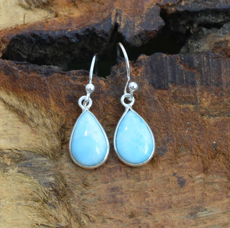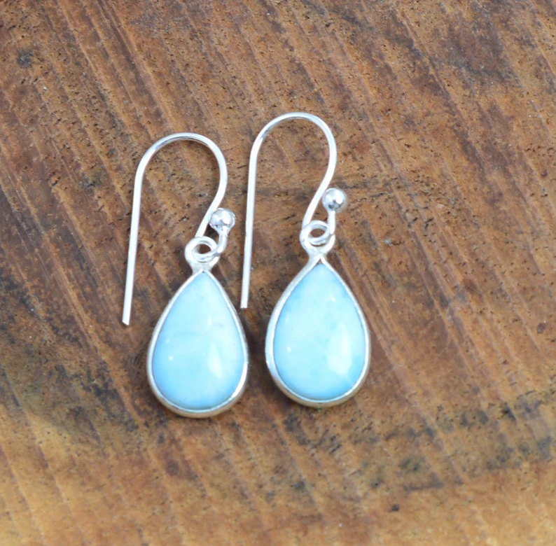 High Quality 925 Sterling Silver Blue Larimar Drop Earrings Handmade Natural Pear Shape Stone Designer Hook Earring Gift Item