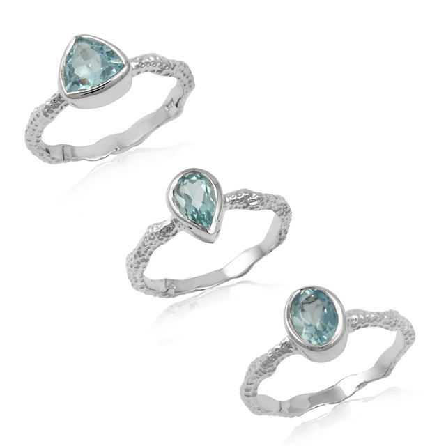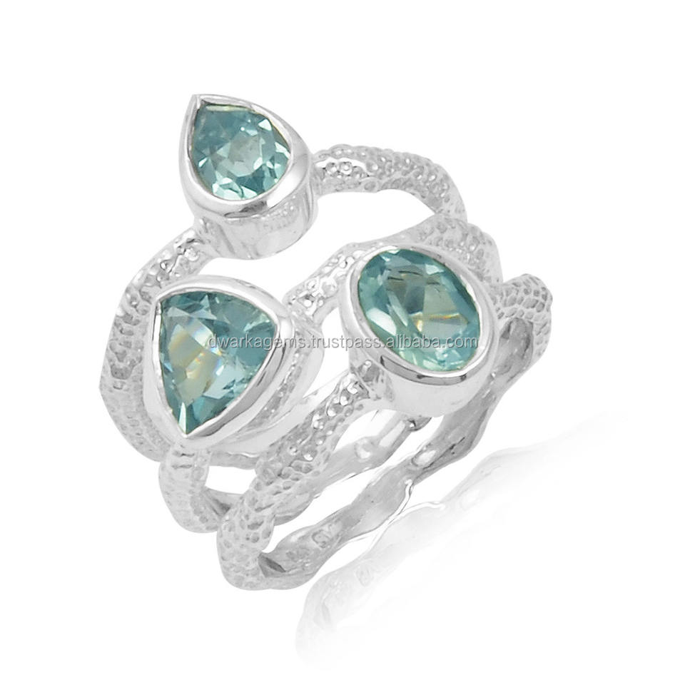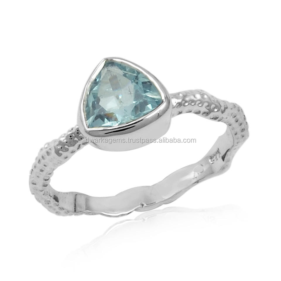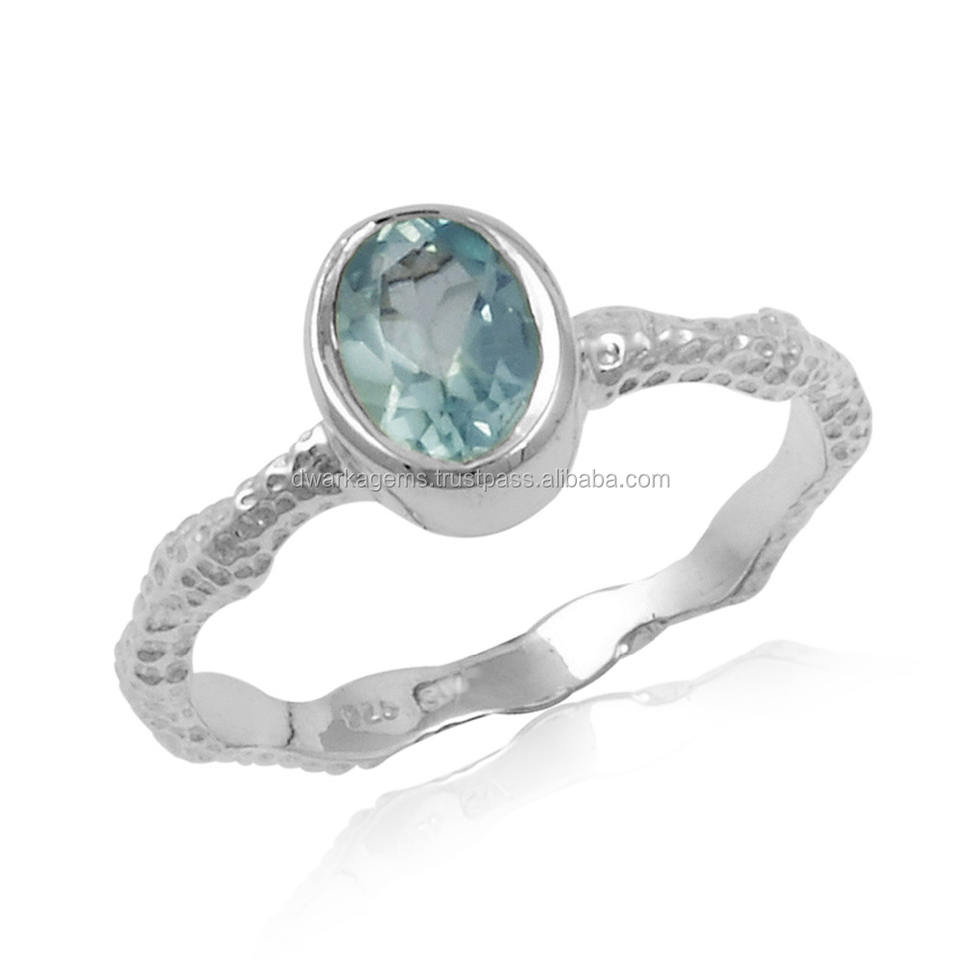แหวน925พื้นผิวสีเงินแท้ดีไซน์คลาสสิกสีฟ้าบุษราคัมเครื่องประดับวางซ้อนกันได้สำหรับปาร์ตี้วันครบรอบ