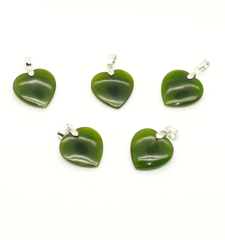 Handcraft Heart Pendant Green Nephrite Jade with 925 Sterling Silver