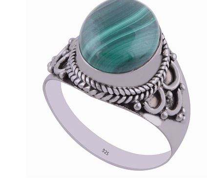 แหวนเงินสเตอริงทำมือสีเขียวแบบคลาสสิกได้รับการรับรองจากโรงงานราคาขายส่ง925