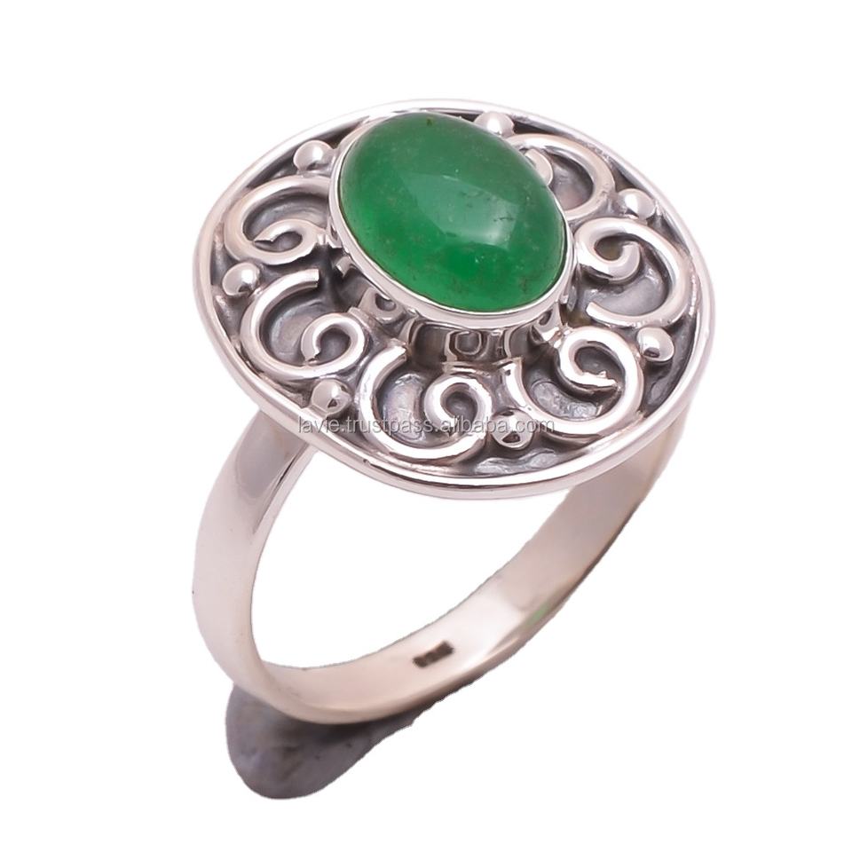 คุณภาพสูง925สเตอร์ลิงเงินธรรมชาติสีเขียวนิลแหวนแฮนด์เมดคลาสสิกอินเดียเครื่องประดับงานแต่งงานโดยตรงผู้ผลิต