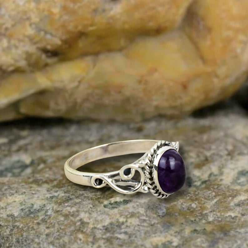 แหวนอเมทิสต์ชุบเงินสเตอริง925ขนาด7x9มม. เครื่องประดับแฟชั่นทำมือ