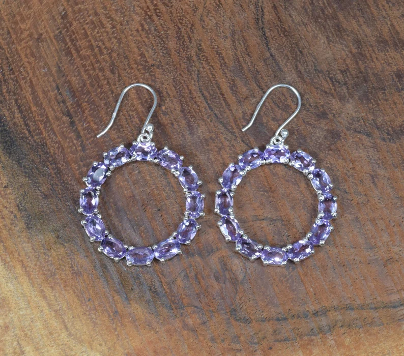 925สเตอริงเงินอเมทิสต์พลอยสีม่วงแบบเหลี่ยมเพชรพลอยตะขอทำด้วยมือเครื่องประดับแบบห้อยสำหรับเป็นของขวัญวันเกิดขายส่ง