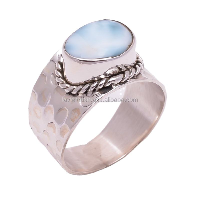 แหวนเงิน925คุณภาพสูงแหวนเงินสเตอร์ลิงแหวนลาริมาร์เครื่องประดับทำด้วยมือของอินเดียเครื่องประดับชั้นดี