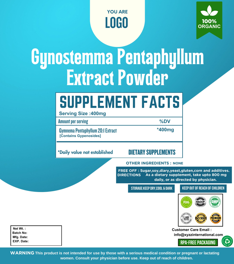 ผงสารสกัดจาก Gynostemma pentaphyllum จาก98% การเพาะปลูกในป่าผลิตจากโรงงานโดยตรงจากผู้ผลิตอินเดีย