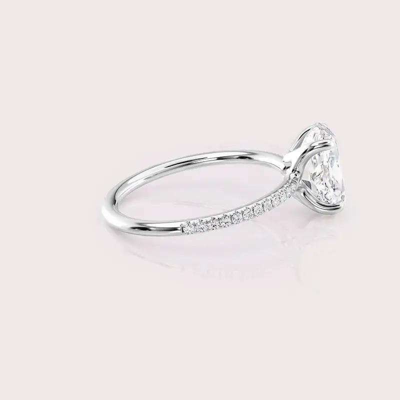 แหวนเพชรรูปไข่คุณภาพสูง 9K สีขาว / สีเหลือง / สีโรสโกลด์ ดีไซน์หรูหราสำหรับสวมใส่ทุกวัน