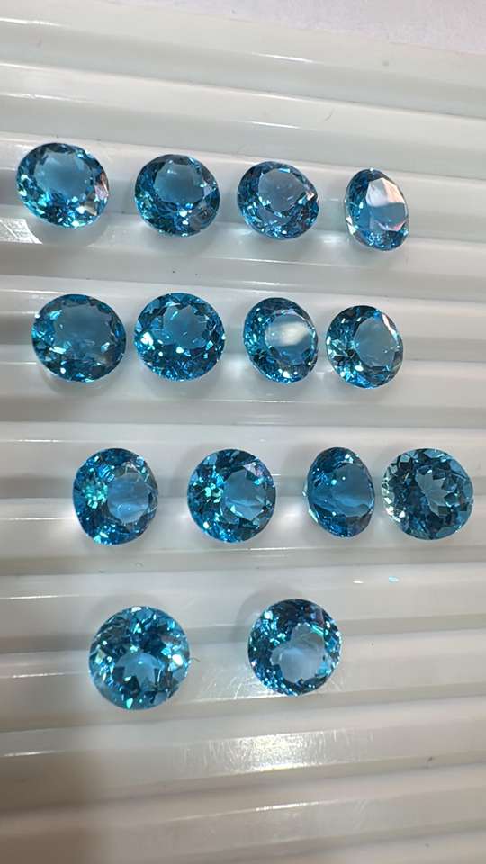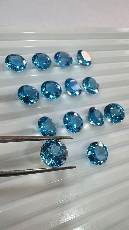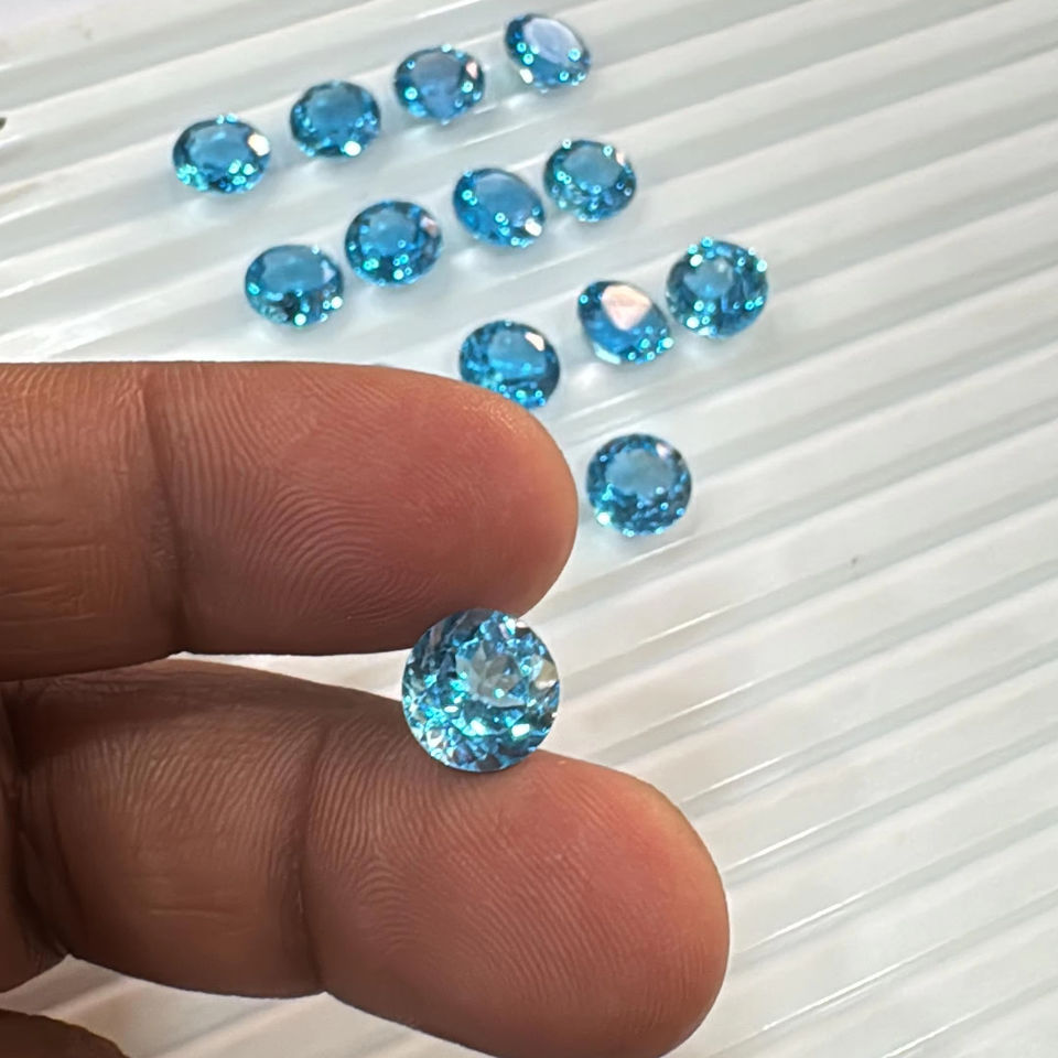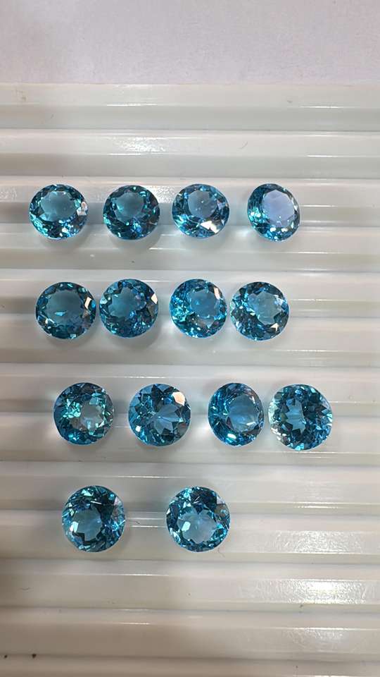 อัญมณีทรงหลวมธรรมชาติสวิสเจียระไนทรงกลมขนาด9มม. บุษราคัมสีฟ้า