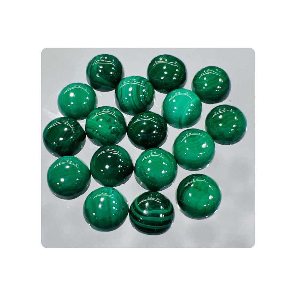 มาลาไคต์ทรงรีคุณภาพสูง ขนาด 9x9 มม. และ 14 มม. ขายส่งพร้อมใบรับรอง IGI พลอยทรงรี พลอย