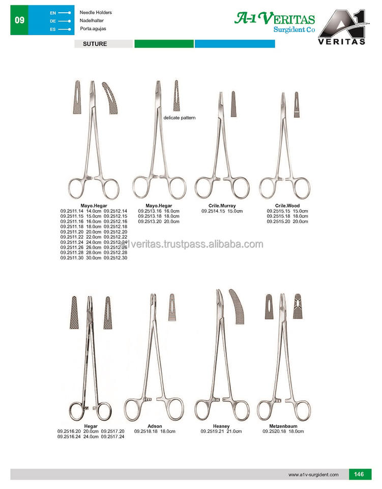 ที่จับเข็มผ่าตัดแบบใช้มือทำจากสแตนเลสคุณภาพสูง A-1 VERITAS Hegar ขนาด 20 ซม./24 ซม. ใช้ซ้ำได้