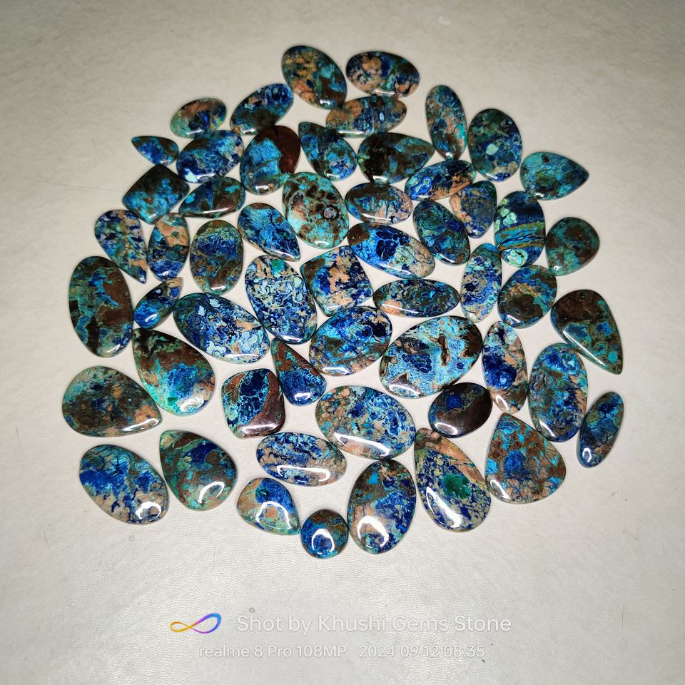 อัญมณีควอตซ์ทรงหลังเบี้ยแบบหลวม AAA + พลอย Azurite ธรรมชาติ