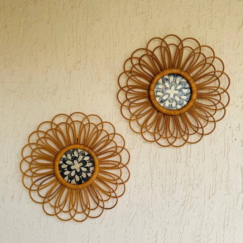 Vintage Rattan Wall Decor with Mother of Pearl Made in Vietnam