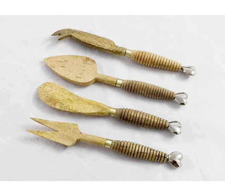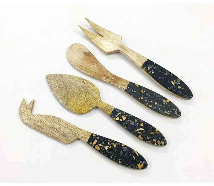 ชุดมีดหั่นชีสไม้อะคาเซีย4ชิ้น,ชุดส้อมเครื่องหั่นชีสมาพร้อมกับด้ามจับหินขัดสำหรับบ้านโรงแรม