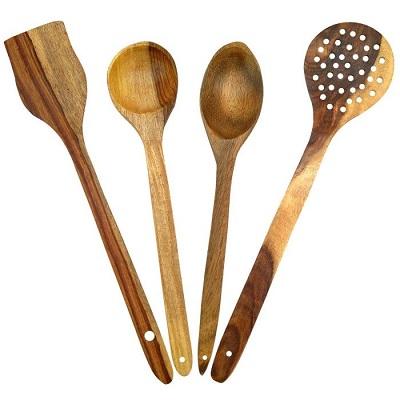 ชุดไม้ยางพารา2ชิ้นพร้อมช้อนและส้อม-เครื่องล้างจานทนทาน