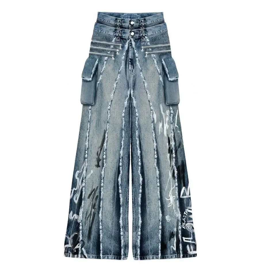 กางเกงยีนส์เดนิมทรงหลวมคุณภาพสูงสำหรับผู้ชาย ตกแต่งด้วยคริสตัล ขากว้างทรงตรง ดีไซน์แบบยูนิเซ็กซ์ ปักโลโก้ตามสั่งได้