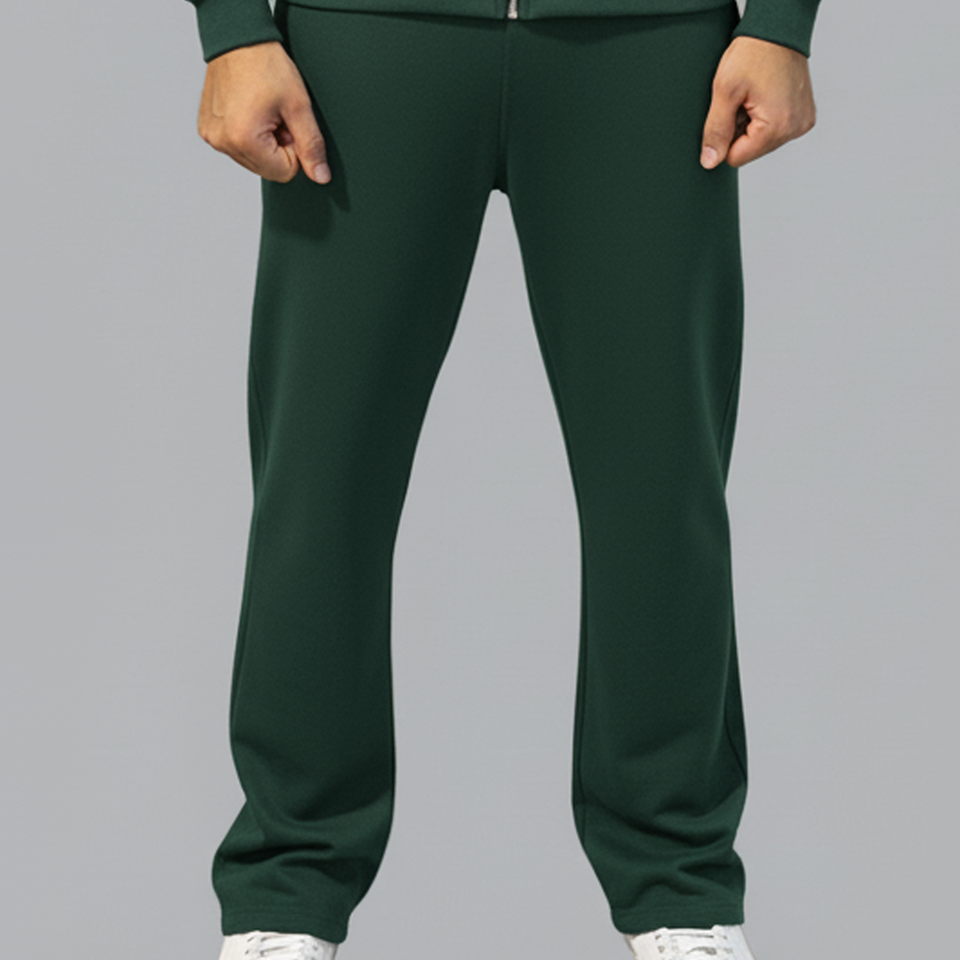 ชุดวอร์มเทคฟลีซซิปคุณภาพสูง ลวดลายย้อมสีแบบแอซิดวอช พร้อมโลโก้สั่งทำพิเศษ กางเกงวอร์มทรงขาบานสำหรับผู้ชาย