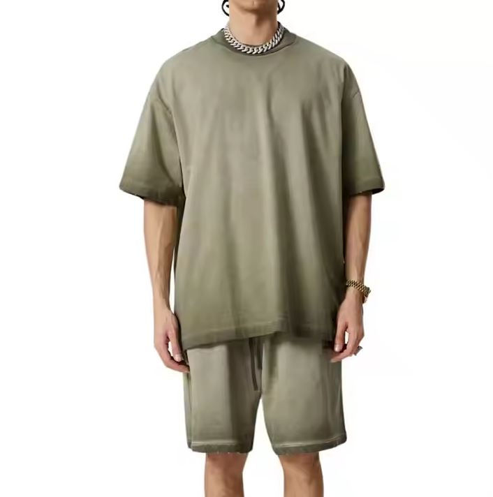 เสื้อยืดลายกรดซักสำหรับผู้ชายดีไซน์แบบสั่งตัดทรงโอเวอร์ไซส์เปิดไหล่ใช้ได้ทั้งชายและหญิงสีทึบสำหรับชุดกีฬาแบบลำลอง