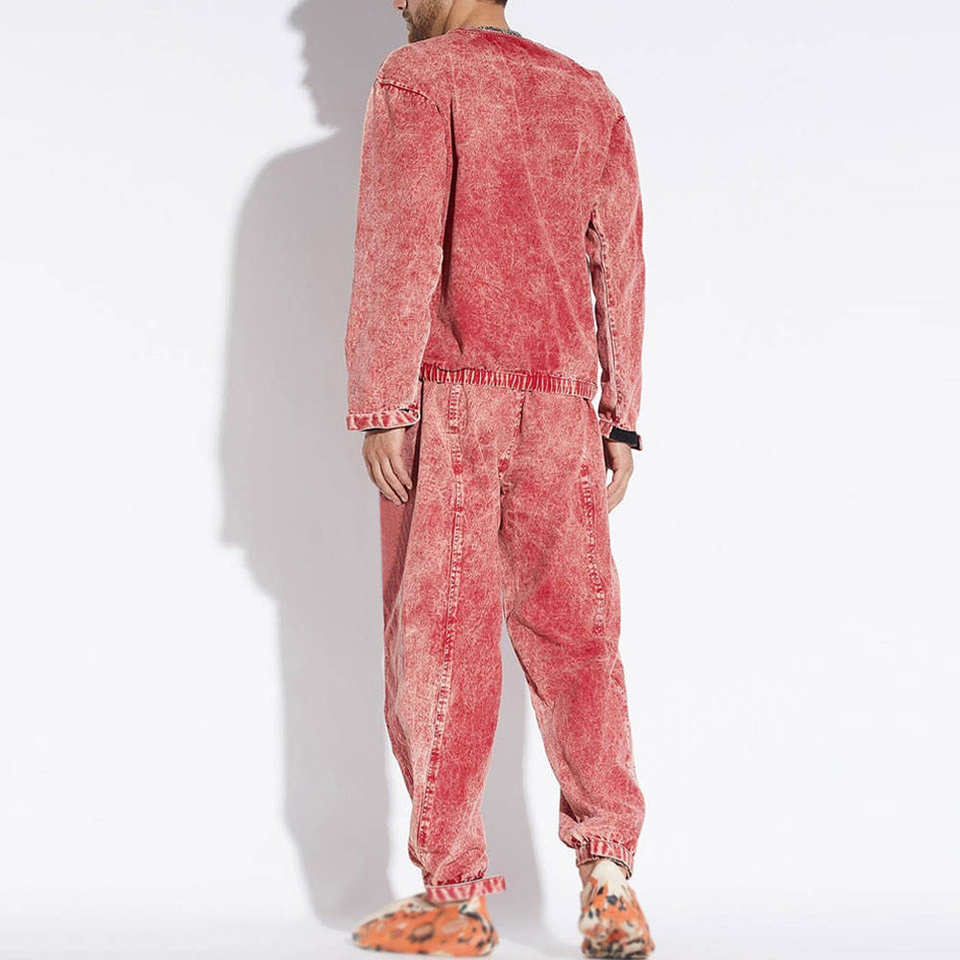 ชุดเซ็ตเสื้อฮู้ดและกางเกงวอร์มแฟชั่นผู้ชายไซส์ US XL คุณภาพสูง ลวดลายย้อมสีแบบแอซิดวอช สีสันตัดกันสองสี พร้อมปักโลโก้ตามสั่ง