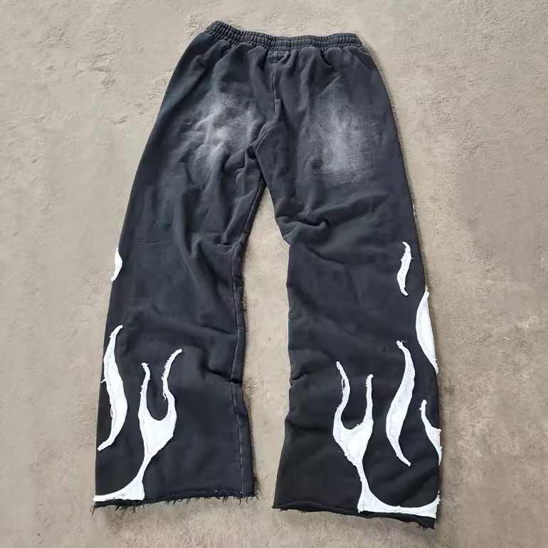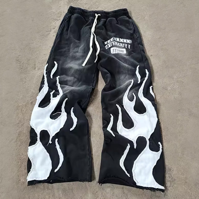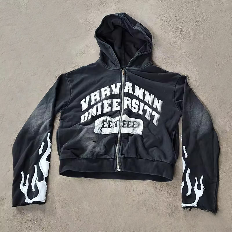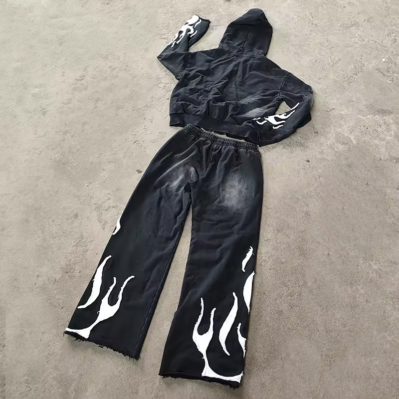 ชุดเซ็ตแทรคสูทผู้ชายคุณภาพสูง ลายปักพิมพ์ลาย แอซิดวอช ทรงครอป พร้อมเสื้อฮู้ดซิปและกางเกงขายาวทรงบ็อกซี่