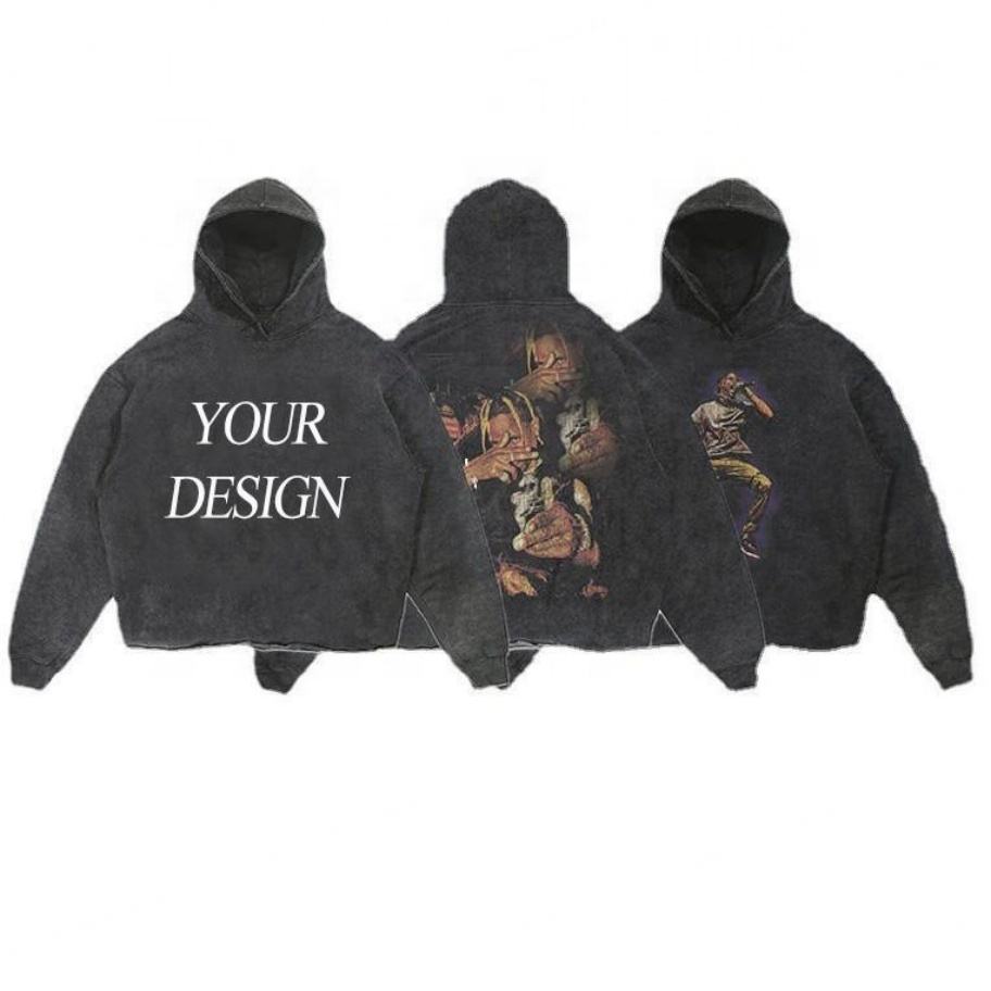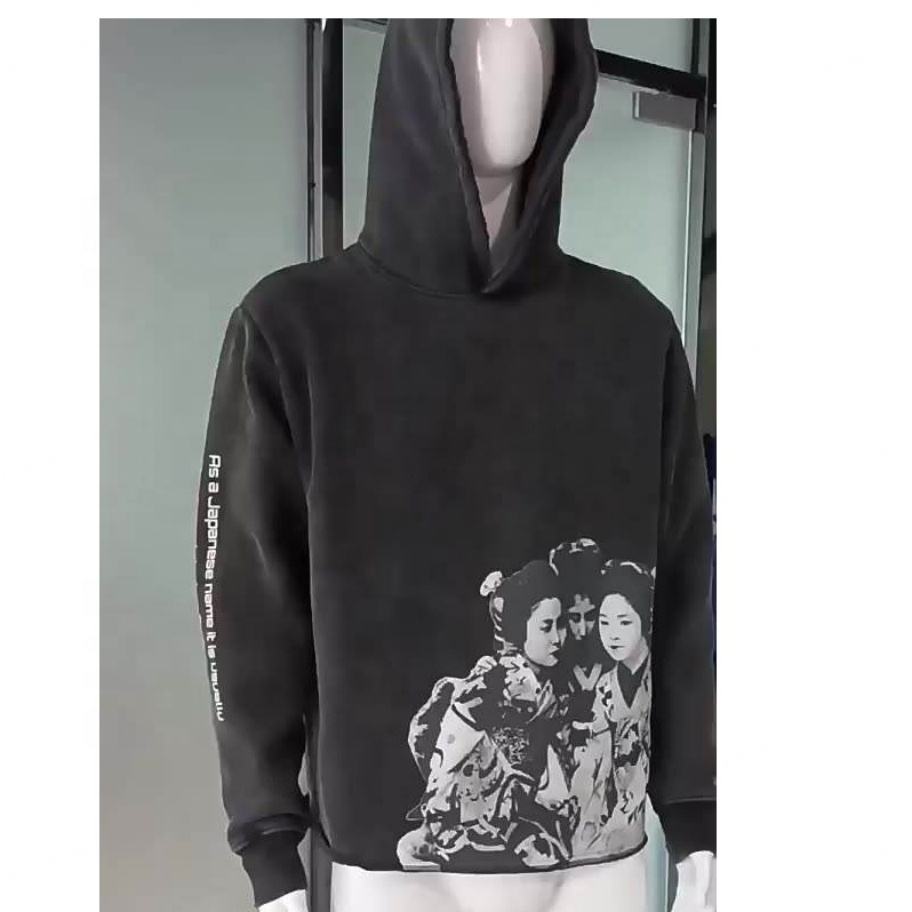 เสื้อฮู้ดดี้คุณภาพสูง ซีรีส์ High Street ล้างสีแบบ Acid Wash สไตล์วินเทจ ทรงโอเวอร์ไซส์ ลุคเสื้อสเวตเตอร์เก่า ล้างสีแบบ Stone Wash