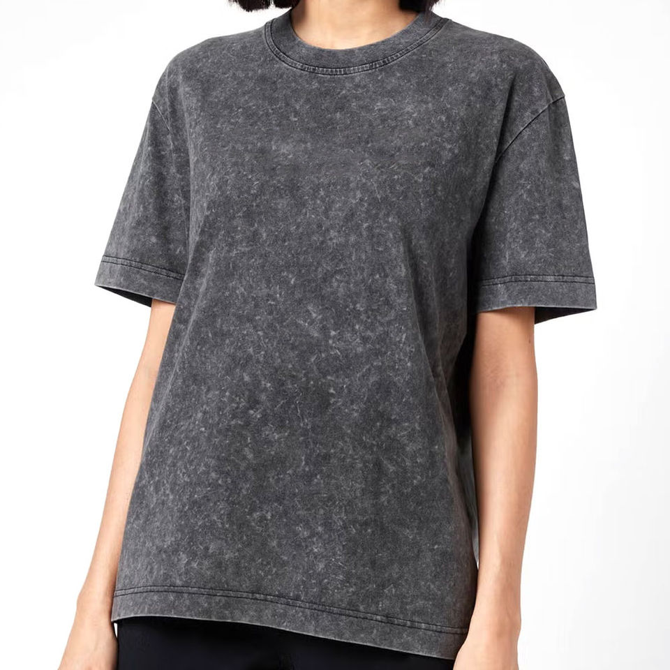 เสื้อยืดวินเทจผู้หญิงคุณภาพสูง ย้อมสีพื้นแบบแอซิดวอช ทรงหลวม สไตล์สตรีทแวร์ ผ้าแคนวาส 100% ราคาส่ง