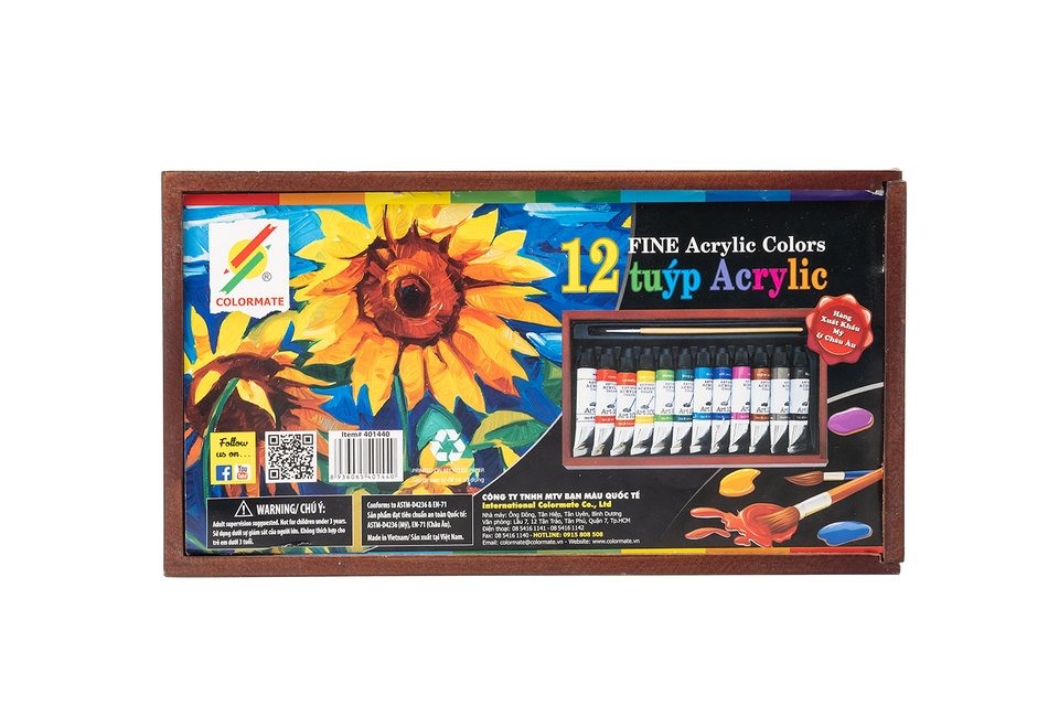 ชื่อผลิตภัณฑ์:หลอดสีอะครีลิค12หลอด12มล