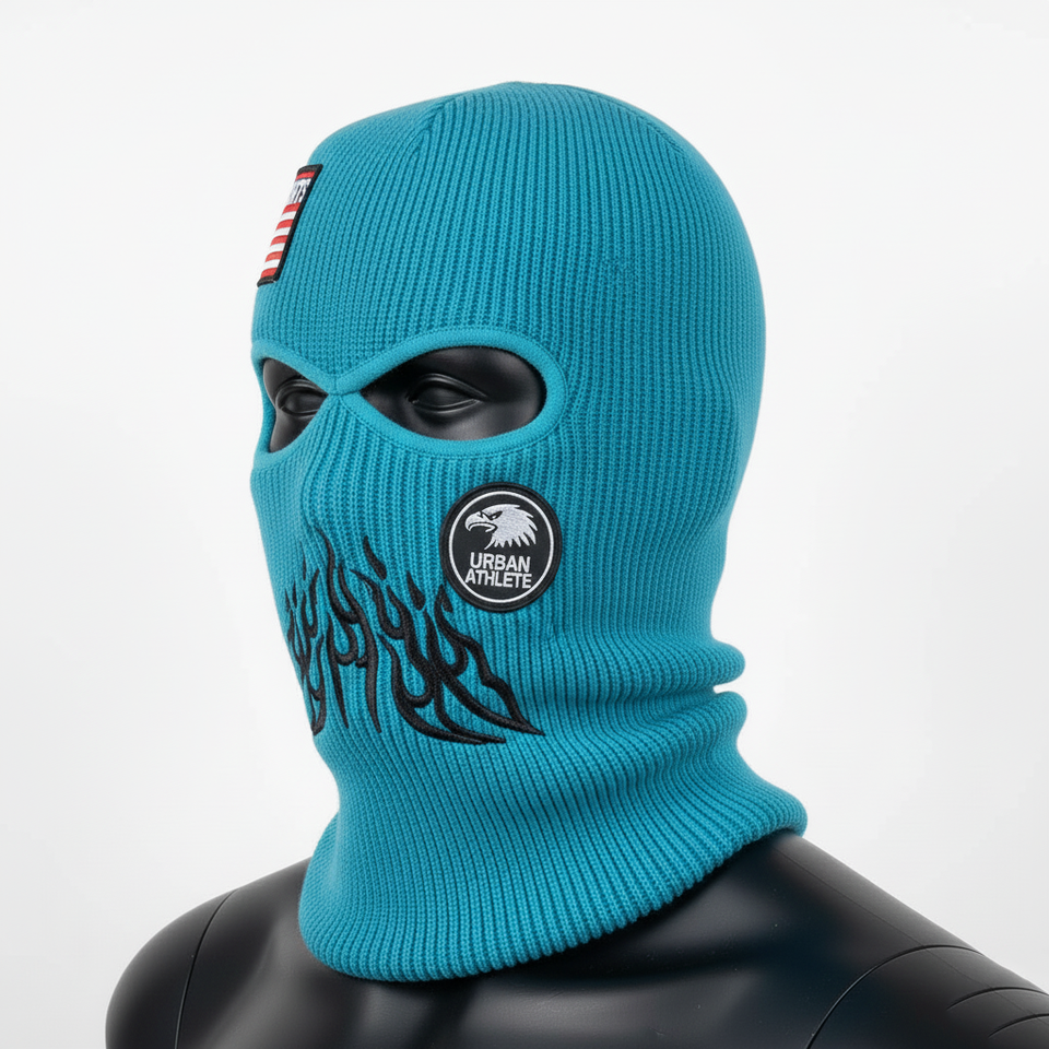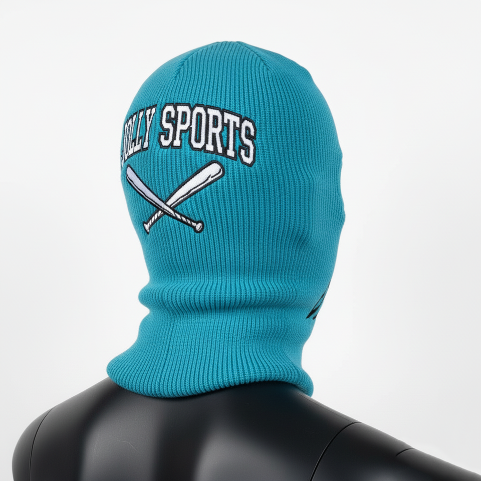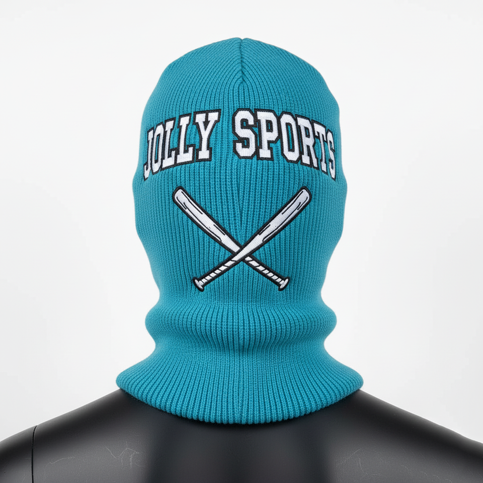 ไหมพรมขนแกะอะคริลิคสำหรับผู้ชายดีไซน์แผงเดียวโทนสีเขียวเป็ดน้ำพร้อมการปักเปลวไฟและโลโก้แบบกำหนดเองได้