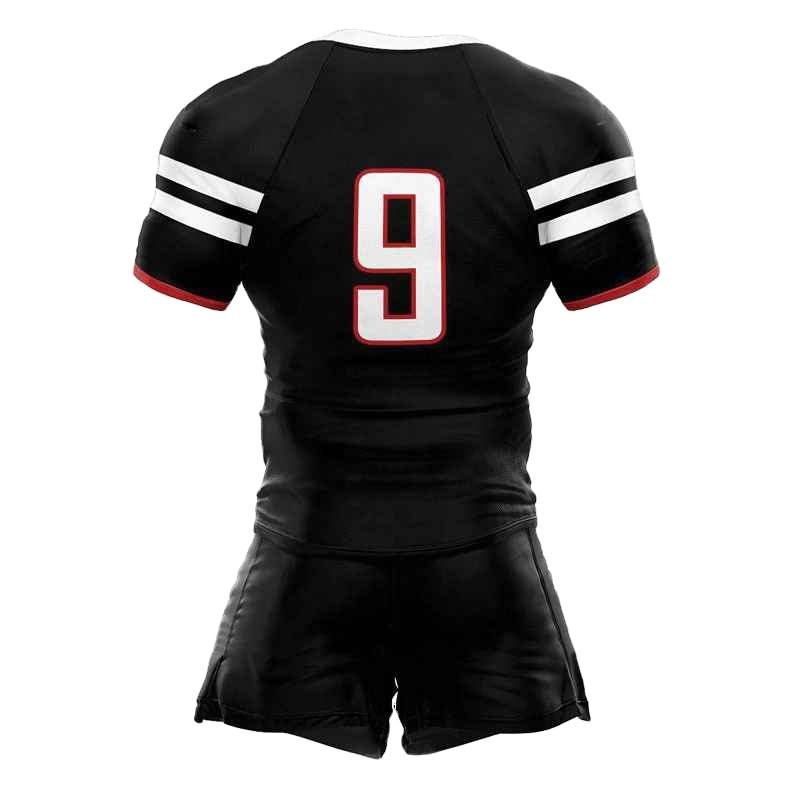 ชุดกีฬารักบี้คุณภาพสูงสำหรับผู้ใหญ่ เนื้อผ้าโพลีเอสเตอร์ตาข่าย ระบายอากาศ แห้งเร็ว รับสั่งทำชื่อทีม ชุดยูนิฟอร์มรักบี้