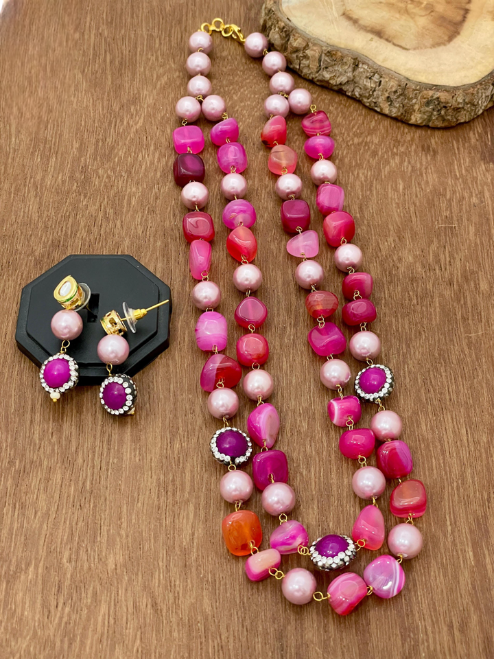 High Quality Agate Mala Set For Women Colorful Pendant With Earrings Beautiful Necklace Perfect For Both Casual & Formal Wear